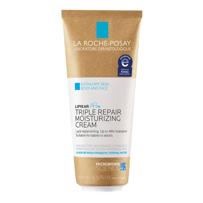 La Roche-Posay Lipikar AP+M Triple Repair Moisturizing Cream is a triple action formula clinically shown to reduce dry, rough skin and provide up to 48 hour hydration.*