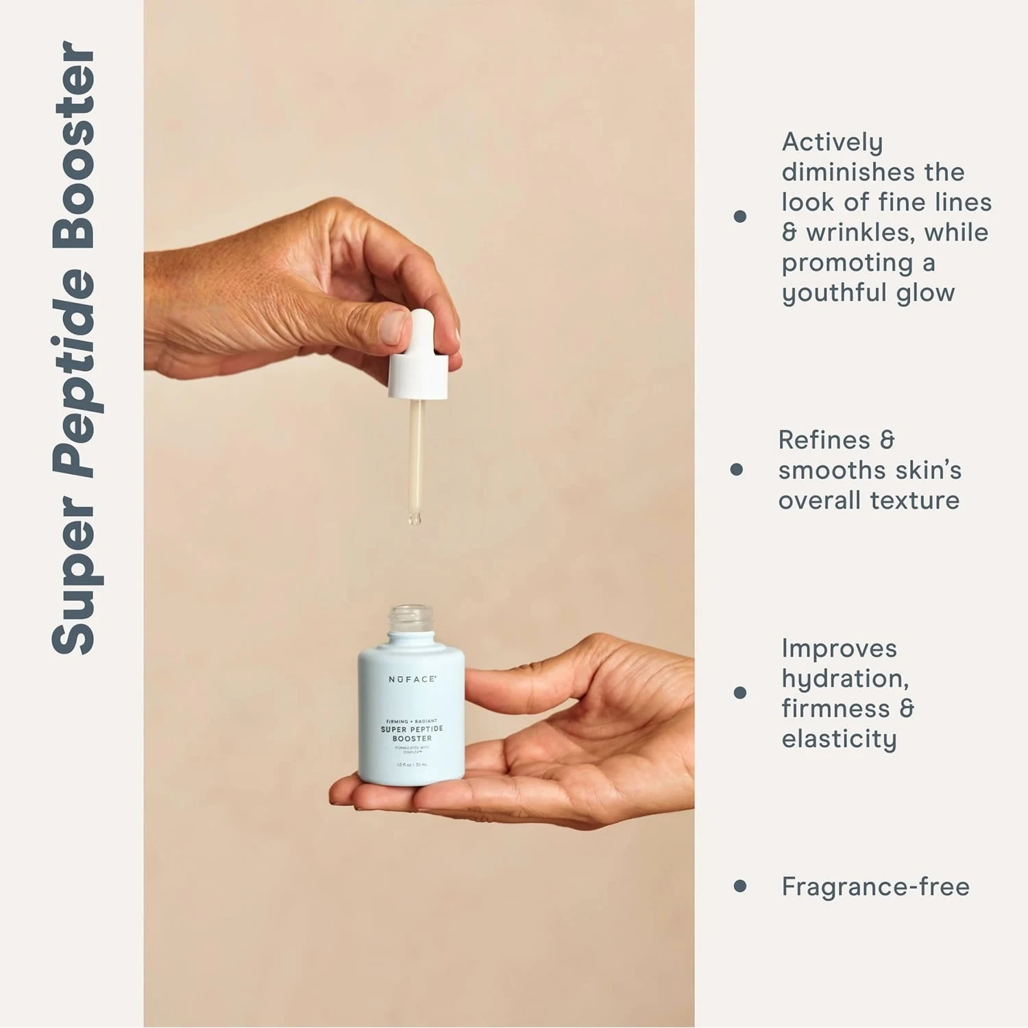 NuFACE Super Peptide Booster is a clean peptide serum booster that helps to firm, tighten, and smooth the skin, while enhancing microcurrent results.*