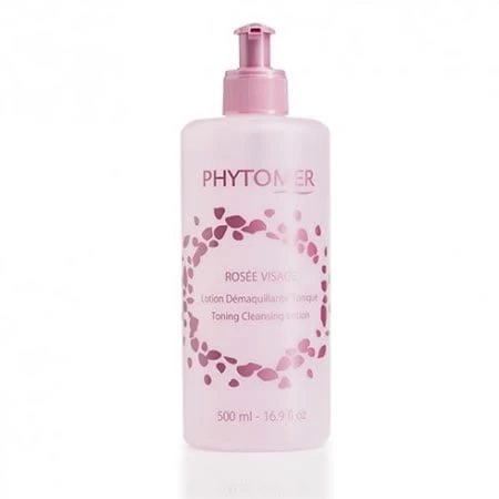 Phytomer Rosee Visage Toning Cleansing Lotion XL is an alcohol-free, all-in-one makeup remover and toner that gently removes makeup and tones the skin without leaving an oily film.*